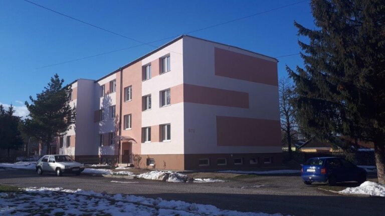 Oprava strechy, zateplenie fasády bytového domu a oprava lódgií, realizácia v roku 2018, dodávateľ PMGSTAV SK,s.r.o.