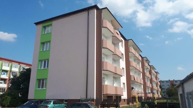 Zateplenie fasády bytového domu a oprava balkónov, realizácia v roku 2017-2018, dodávateľ IMO,s.r.o.