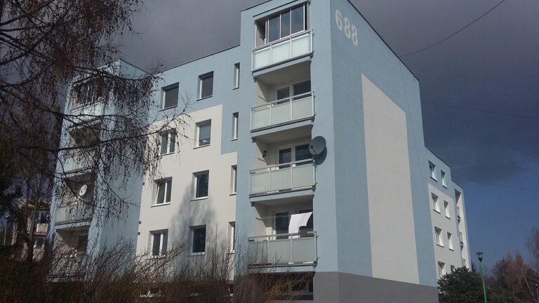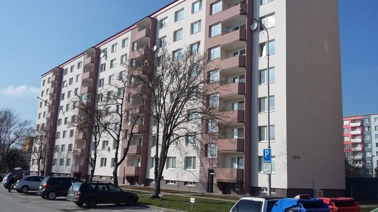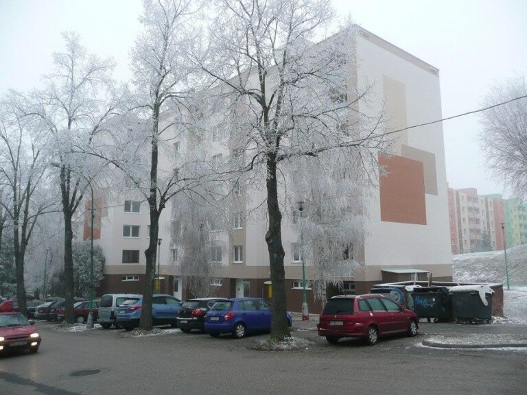 Oprava strechy, zateplenie fasády bytového domu, oprava lódgií, výmena otvorových výplní, realizácia v roku 2015-2016, dodávateľ Stavomal Slovakia, s.r.o.